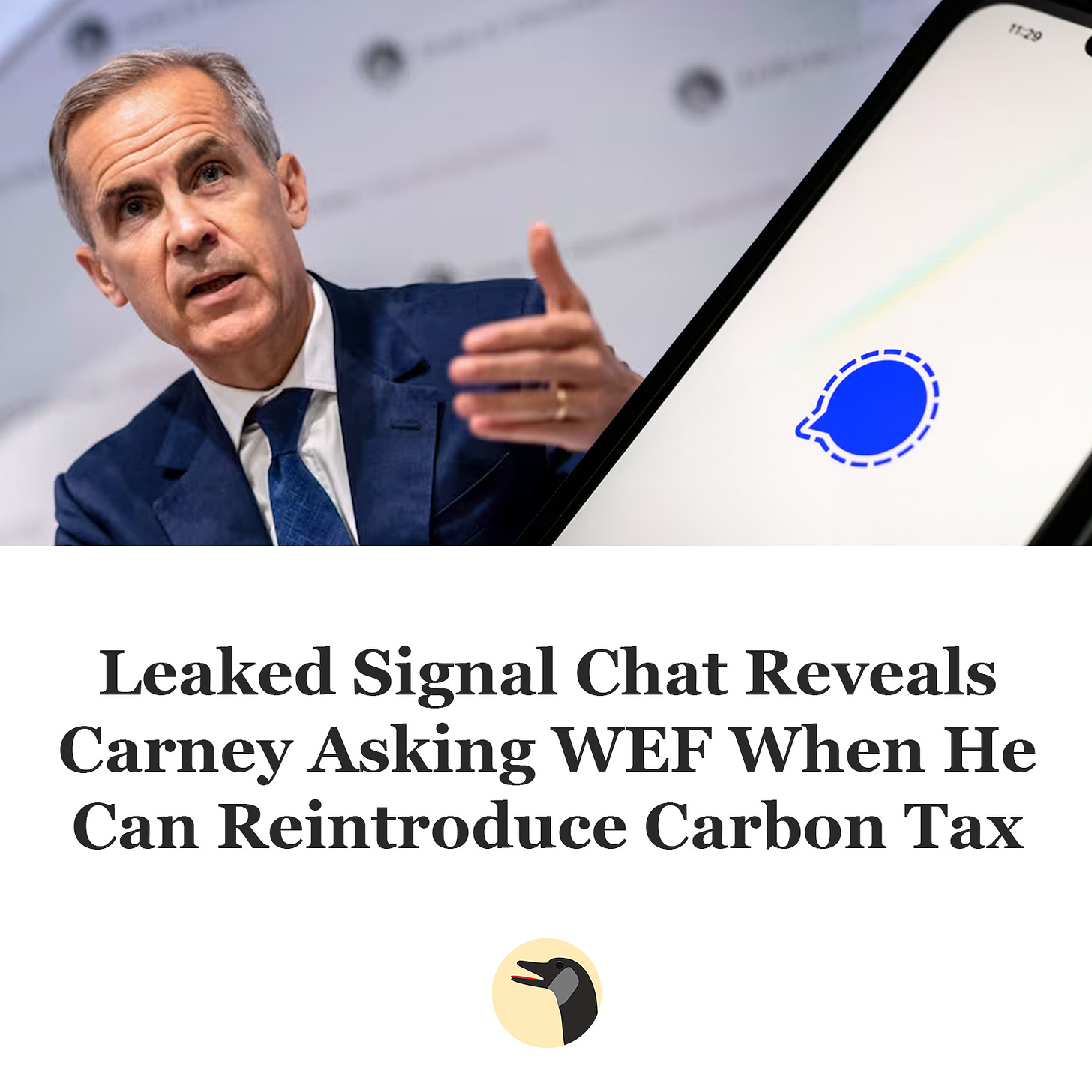 Leaked signal chat reveals Carney asking WEF when he reintroduce carbon taxThe Screaming GooseApr 04, 2025Share